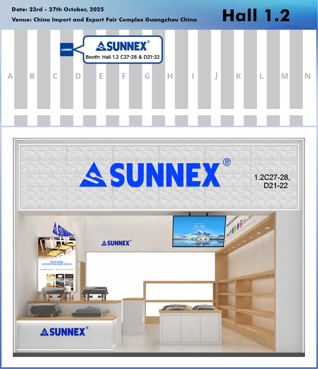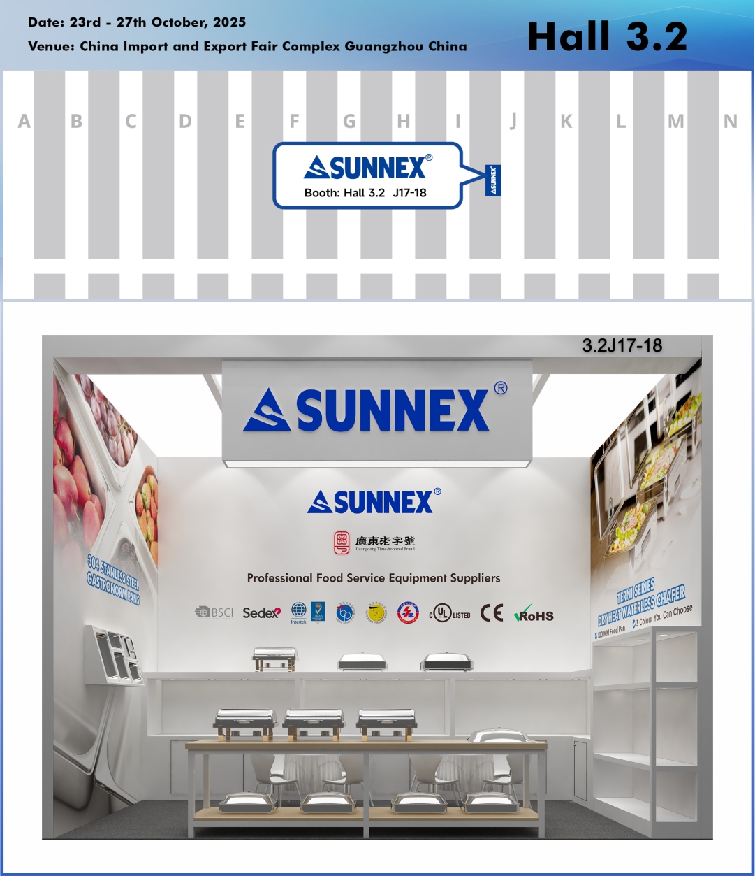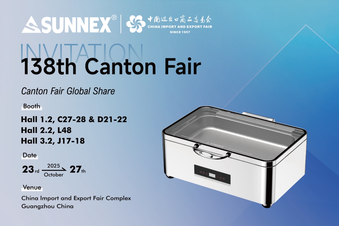 Guangzhou, चीन – ऑक्टोबर २०२५ – SUNNEX Century (Shenzhen) Ltd., प्रीमियम बुफे वेअर, चाफिंग डिशेस, ड्रिंक डिस्पेंसर आणि घरगुती वस्तूंची एक आघाडीची उत्पादक, 138 व्या Faaporton China Import आणि Exporton China Import येथे आमच्या बूथला भेट देण्यासाठी आंतरराष्ट्रीय खरेदीदार, मीडिया आणि उद्योग व्यावसायिकांना आमंत्रित करण्यात आनंद होत आहे.