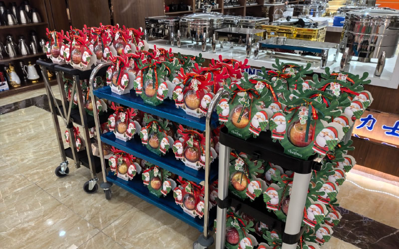 एक गाणे गायले, “आम्ही तुम्हाला मेरी ख्रिसमसच्या शुभेच्छा देतो, आम्ही तुम्हाला आनंददायी ख्रिसमसच्या शुभेच्छा देतो….”, पॅक केलेले सुंदर आणि मोठे लाल सफरचंद याचा अर्थ शांतता, आणि मग आमच्या सांताक्लॉजने आम्हाला प्रत्येक स्टाफसोबत दोन शांत सफरचंद पाठवले दुहेरी आनंद, व्वा, मोठ्या कुटुंबासारखे गोड.