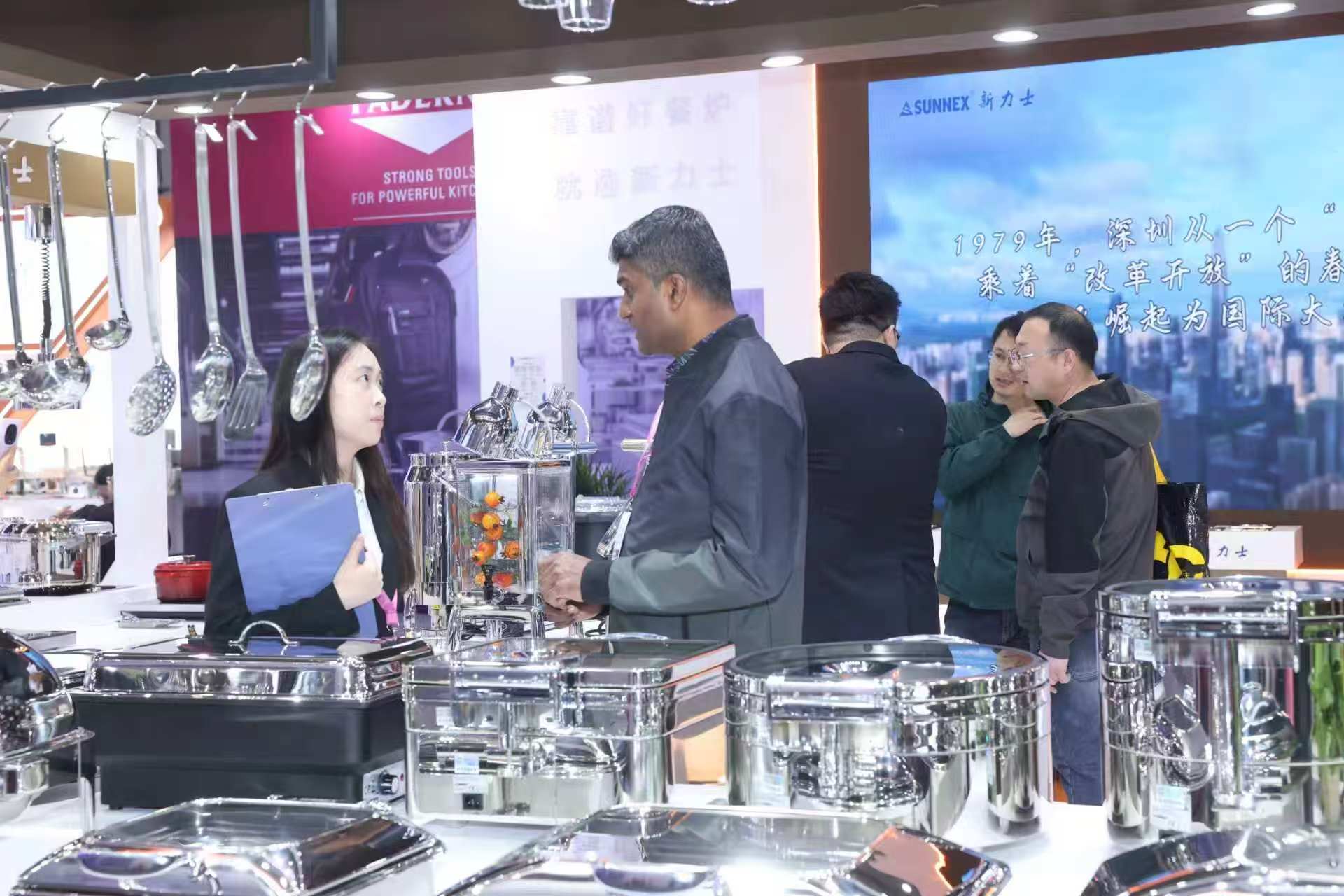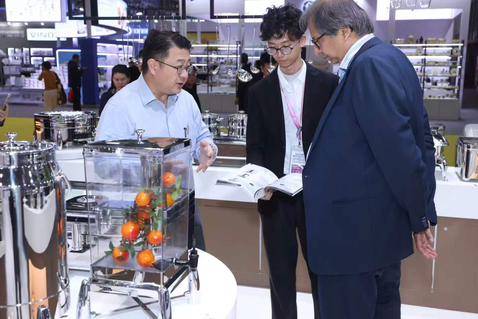 प्रदर्शनादरम्यान, ब्रँडने वॉटरलेस ड्राय चाफिंग डिशेस, क्लासिक स्टेनलेस स्टील गॅस्ट्रोनॉर्म पॅन, वेरोना मालिका दुधाचे कलश, आइस-ट्यूब पेय डिस्पेंसर आणि इतर नवीन उत्पादने, हाय-एंड हॉटेल्स, चेन कॅटरिंग ब्रँड आणि स्टाफ कॅन्टीनच्या विविध गरजा पूर्ण करण्यावर लक्ष केंद्रित केले. आमच्या बूथला मध्य पूर्व, आफ्रिका, युरोप, अमेरिका आणि दक्षिणपूर्व आशियामधील व्यावसायिक परदेशी खरेदीदारांकडून सतत भेटी मिळाल्या. आमच्या व्यावसायिक कार्यसंघाने सखोल सहकार्य चर्चेसाठी एक-एक उत्पादन परिचय आणि सानुकूलित समाधान समर्थन प्रदान केले.